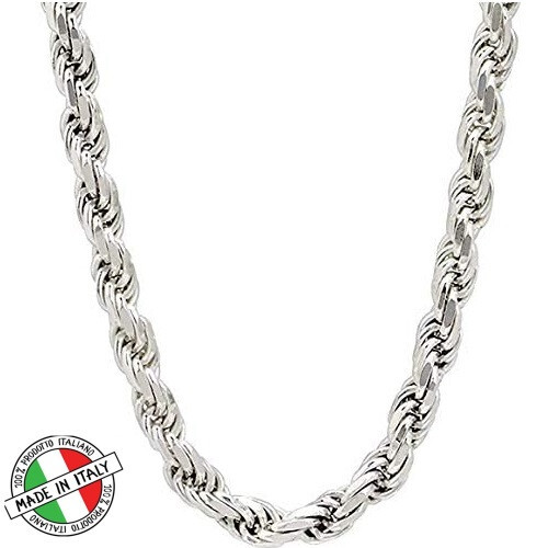 Italienische 925 Sterlingsilber 6 mm einfarbiges Seil Diamant Schliff Twist Link Halskette 22,0