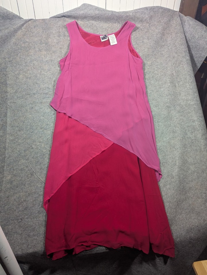 Vintage Phool Gr. XL rot & rosa langes Lagenlook gemustertes Kleid Party Valentinstag