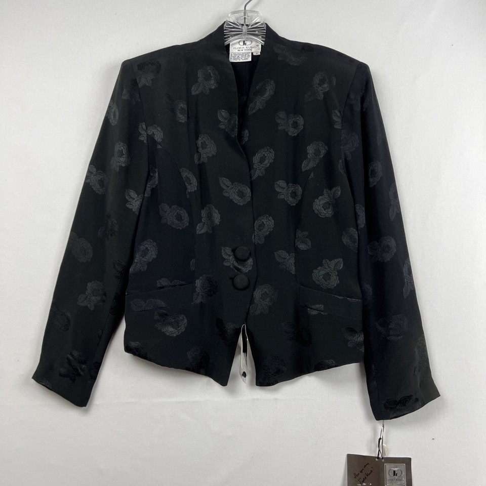 Vintage Flora Kung New York Jacket Womens size 8 Silk Floral Black