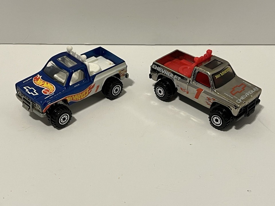 Lot of 2 1977 Hot Wheels Chevrolet Pickup Truck #1 Chrome Red & Race Team Arum