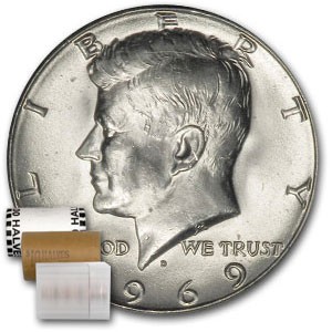 1969-D Kennedy halber Dollar 20-Münzrolle BU