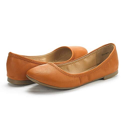 DREAM PAIRS Womens Ballerina Walking Flats Shoes, Tan - 7.5 (Sole-Happy)