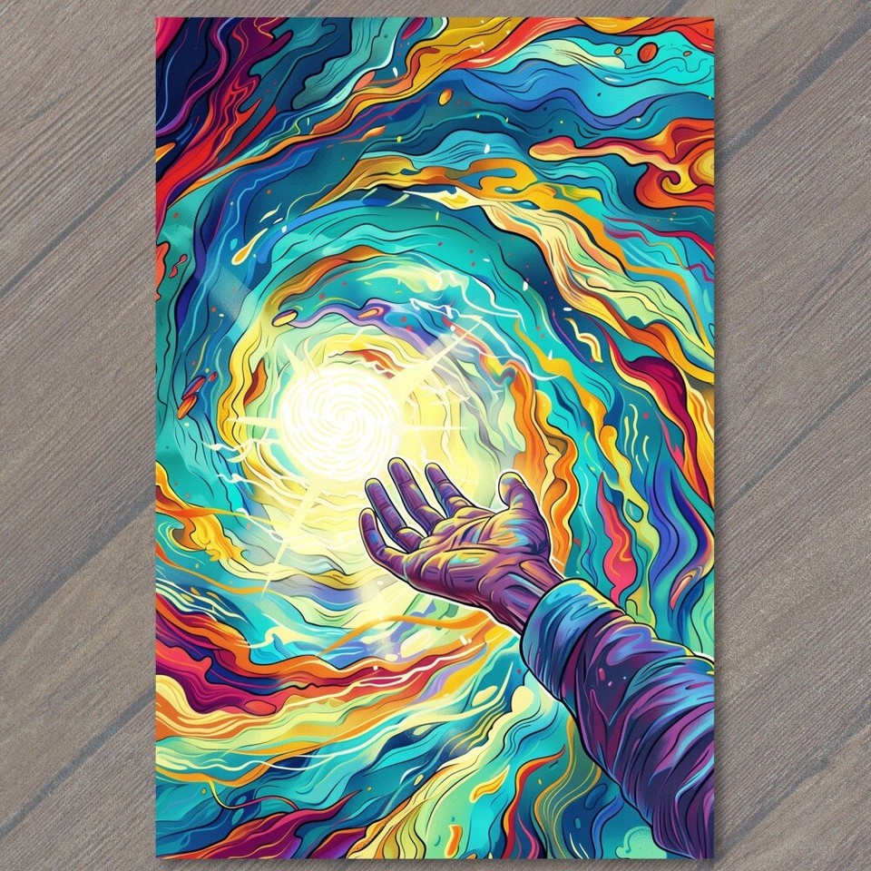 5x7" Hand Void Psychedelic Into The Light Forever Colorful Weird Spiraling