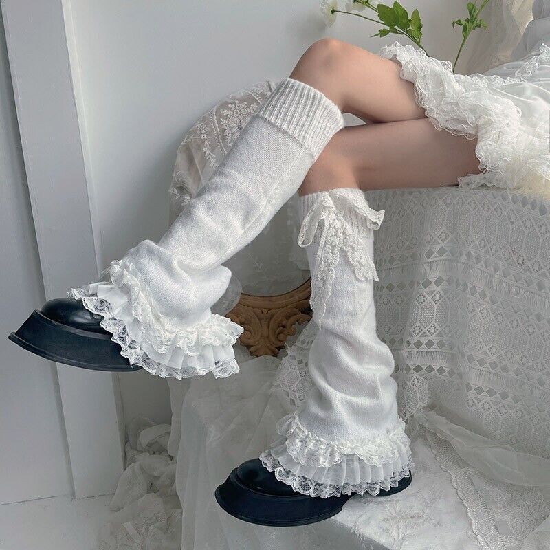 Japanese women Lolita girls Harajuku multi-layer lace bow knit Socks leg warm