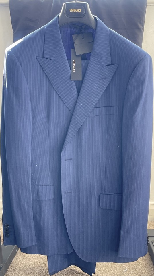 Versace Blau Ton Streifen Anzug UK50 US50 EU60 W32 BRANDNEU & ETIKETT UVP 1530£