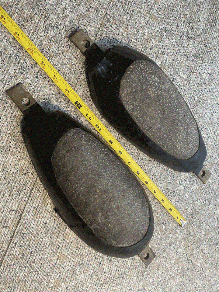 2ea (pair of) Large BOAT HULL ZINC ANODE BOLT ON 13 in to center of holes