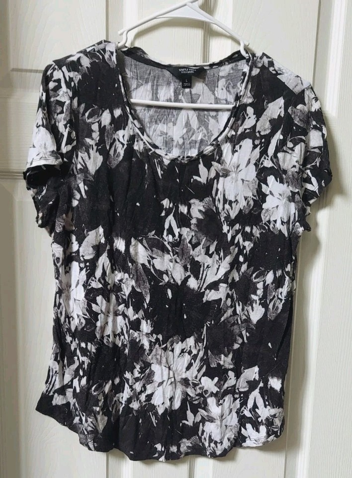 Simply Vera Wang Damen Größe Lg Shirt Oberteil kurz Slv Pullover schwarz weiß Bluse
