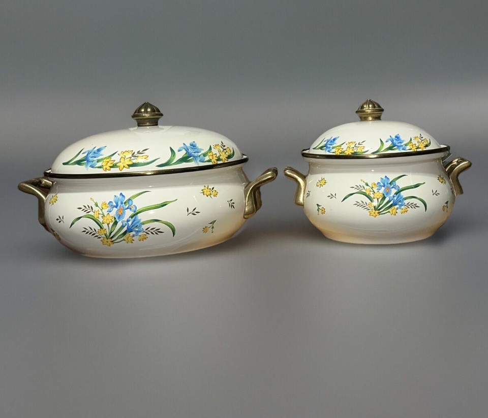 Vintage Villeroy & Boch Riviera Emaillegeschir r Dutch Ovens nie benutzt 2er Set