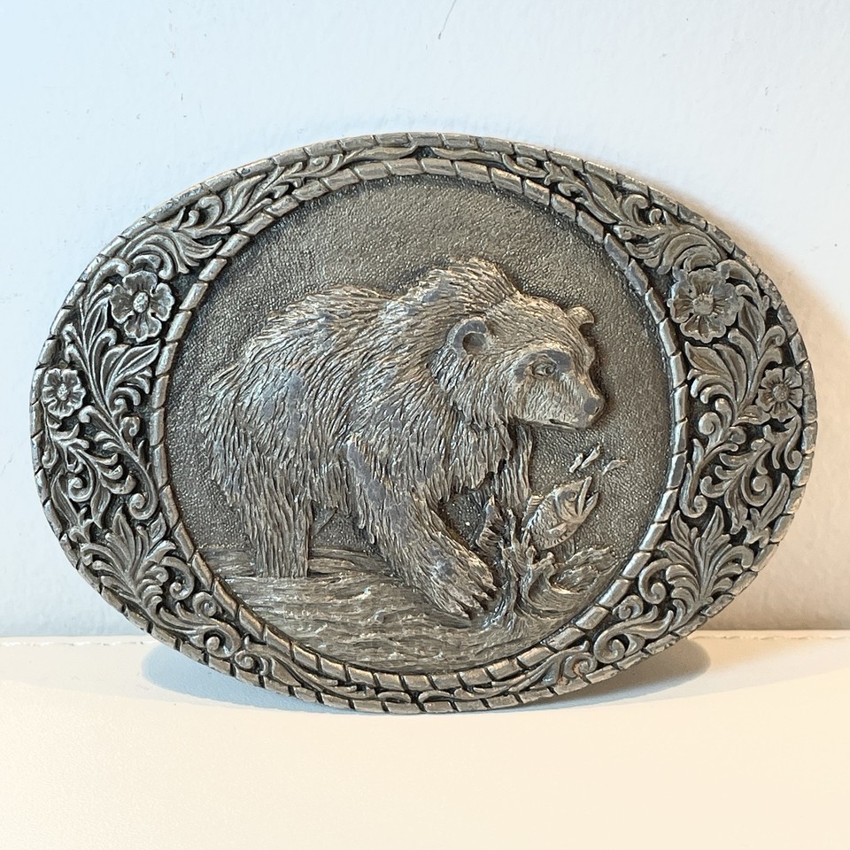 Grizzlybär Fisch Gürtelschnalle von Indiana Metal Craft 1981