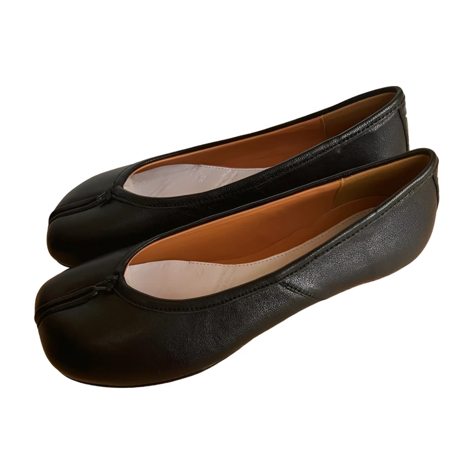 Unused Maison Margiela Tabi Ballet Flats Black Vintage Leather Shoes EU 38 Auth