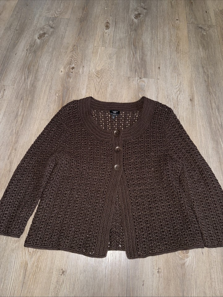 Talbots Petites handgestrickt 3/4 Ärmel braun Knopf Cardigan Pullover Größe XL P EUC