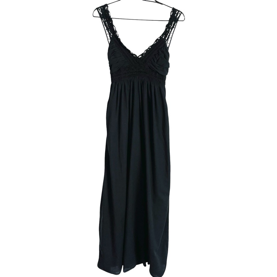 Wishes Wishes Wishes Maxikleid Gr. L schwarz V-Ausschnitt Babydoll Häkel Sommerkleid
