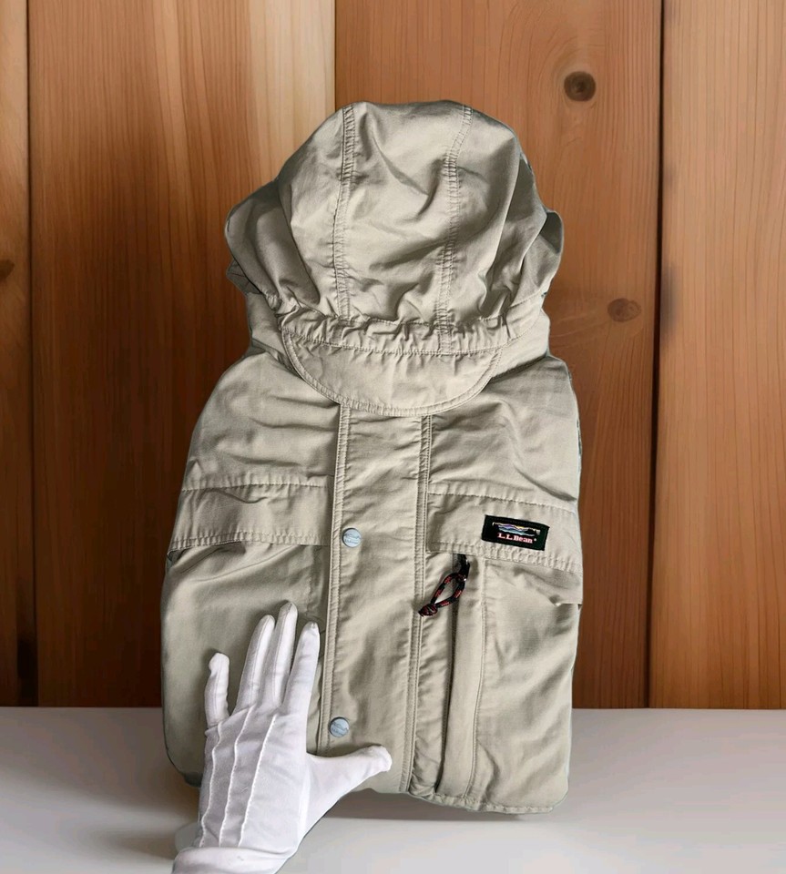Vintage LL Bean Beige Jacke Windbreaker Parka abnehmbare Kapuze Herren Gr. Large