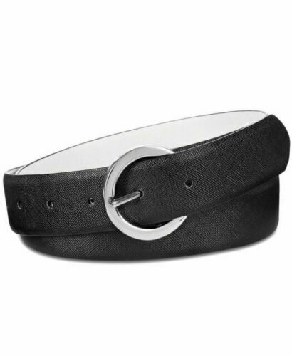 Steve Madden Damen Saffiano Wendegürtel schwarz weiß silberne Schnalle Medium NEU