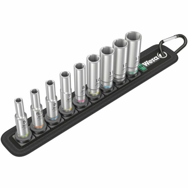 Wera 004525 9 Stück 1/4 Zoll Vierkant Tiefsechskant Steckschlüssel satz & Schiene, Riemen A 5-13 mm