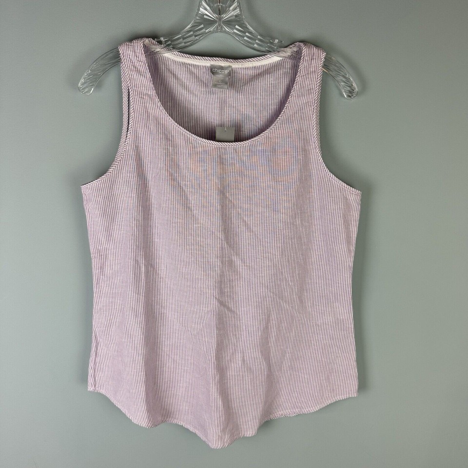 Neu mit Etikett Chicos Leinen-Tanktop U-Ausschnitt Lavendel Rouge vertikale Streifen Größe 0 Small