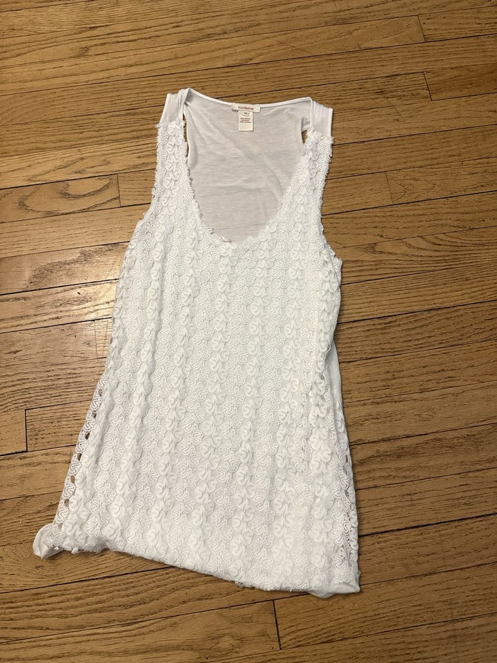 Sundance Women's White Knit Tank Top Lace Overlay Size Medium