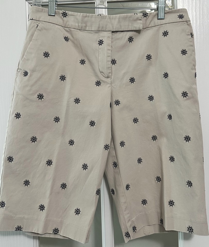 Talbots Stretch Chino Shorts beige Baumwollmischu ng Reißverschluss mit marineblauem Bootsrad Größe 8