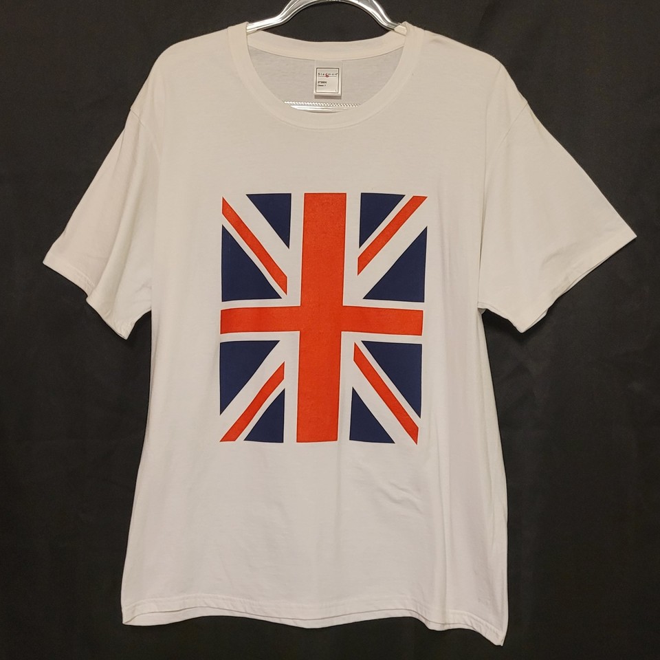 Union Jack Flag White Short Sleeve Graphic T Shirt England UK Adult Large