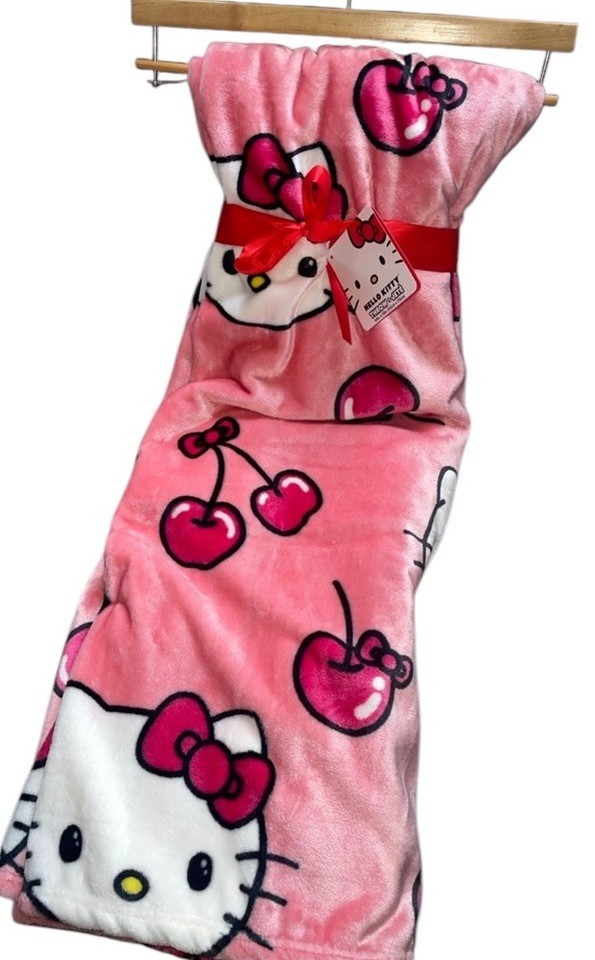Hello Kitty Cherry Bow Überwurf Decke 60x70 Neu mit Etikett Viral