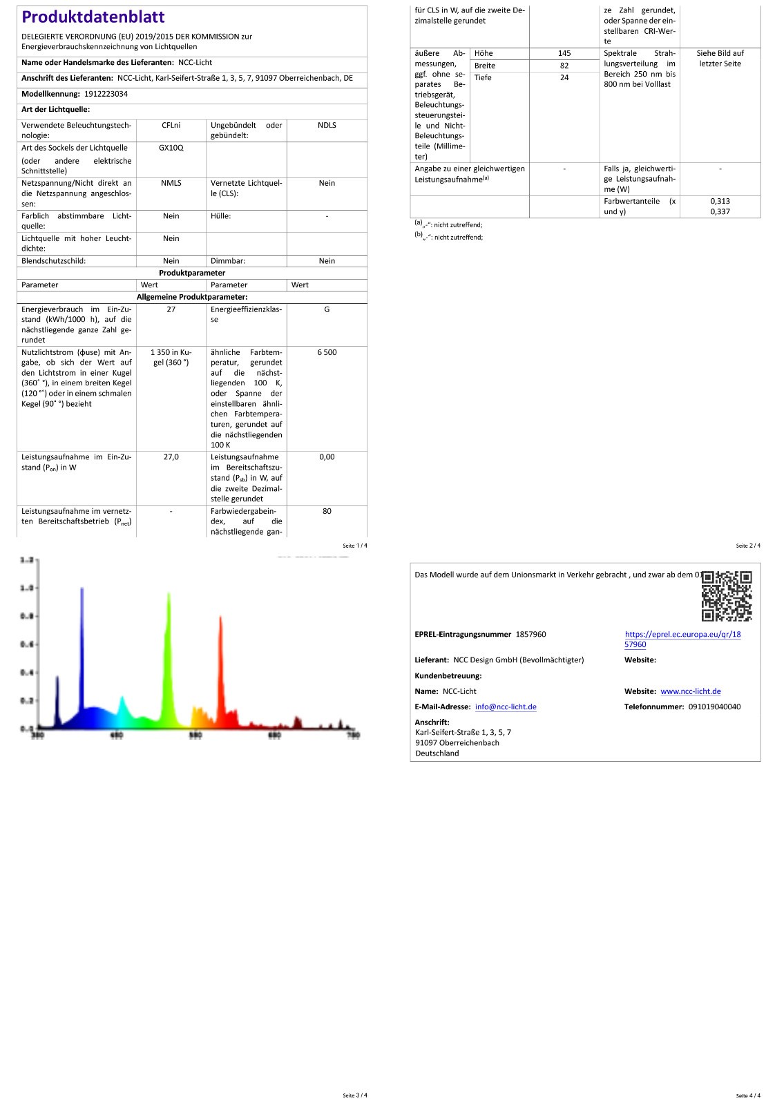 Kompaktleuchts tofflampe FML 27W GX10Q 4P 4 Pins Sparlampe 865 Tageslicht 6500K