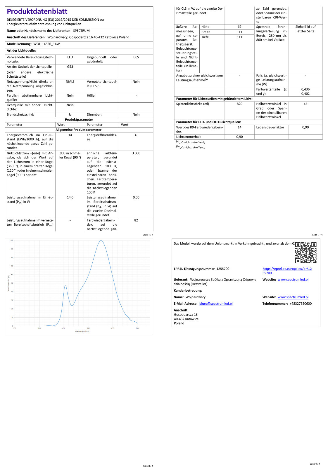 Spectrum LED Leuchtmittel AR111 Reflektor 14W G53 12V 900lm warmweiß 3000K 45°