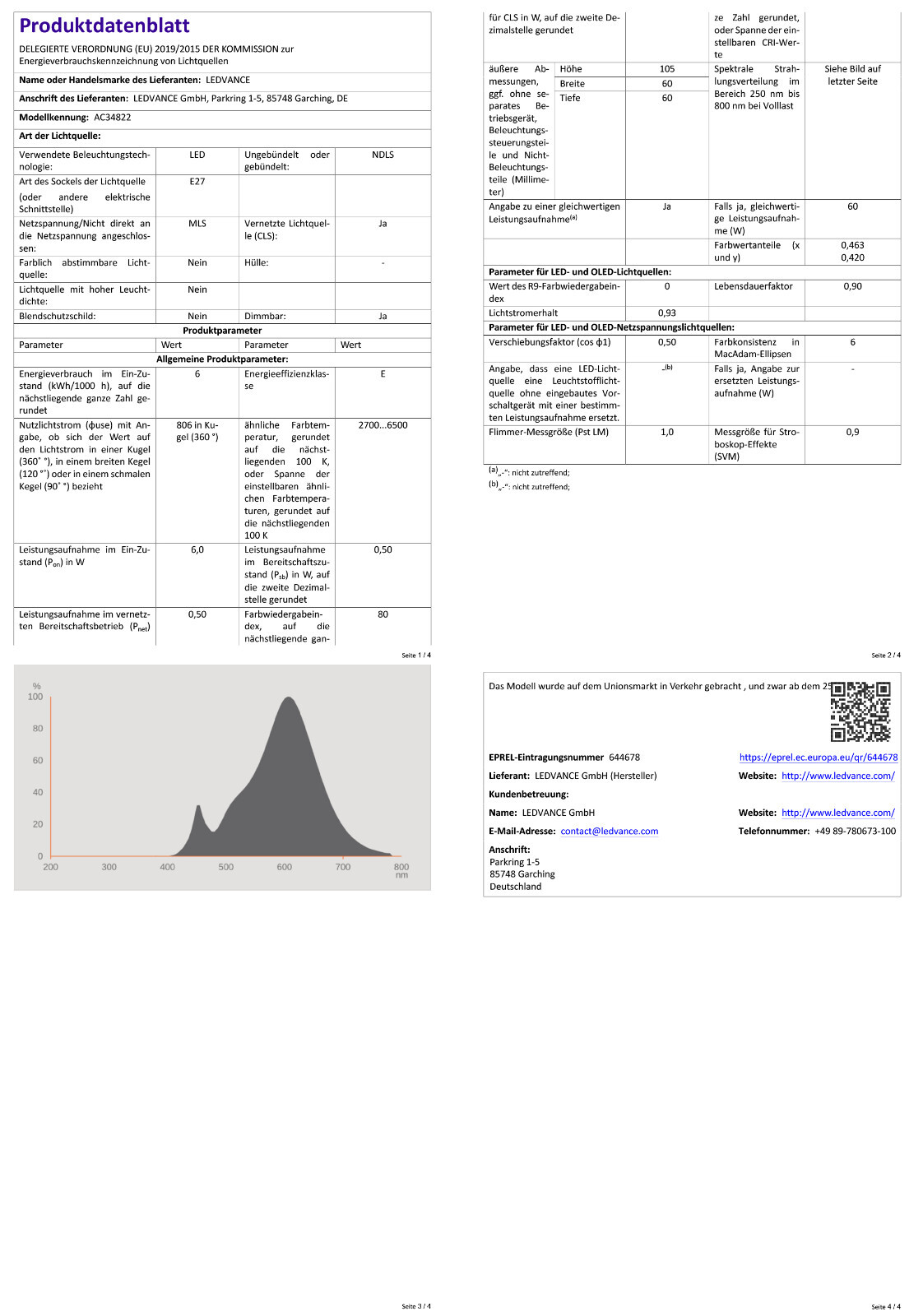 - 6W Sockel E27 LEDs Leistung,