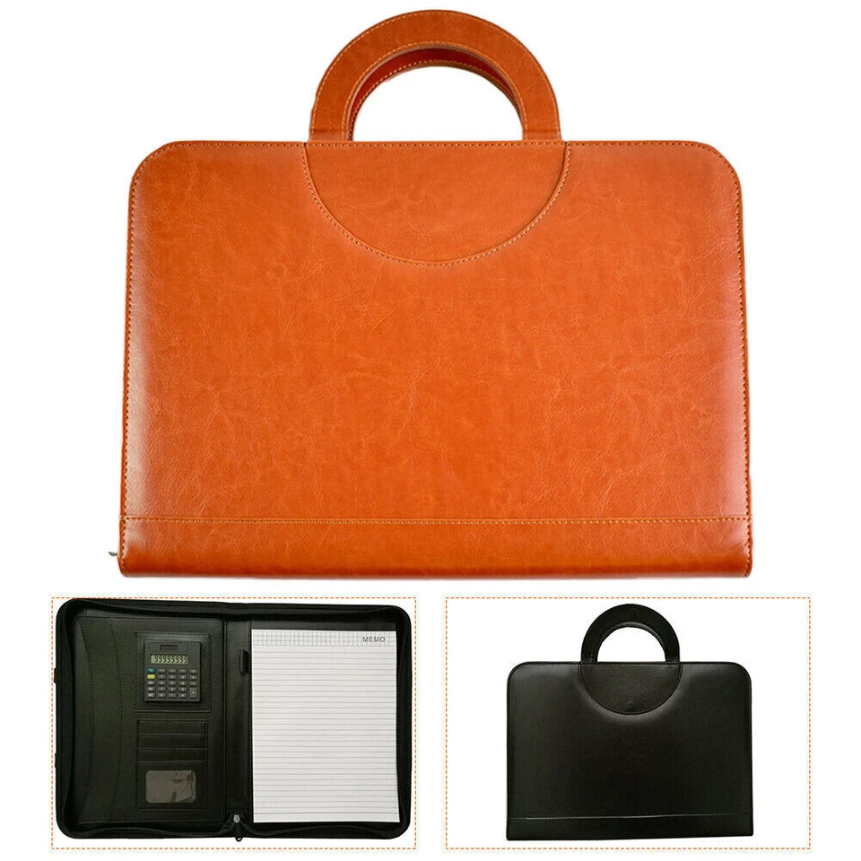 A4 Zipped Conference Business Leather Resume Organizer Padfolio Portfolio Folder