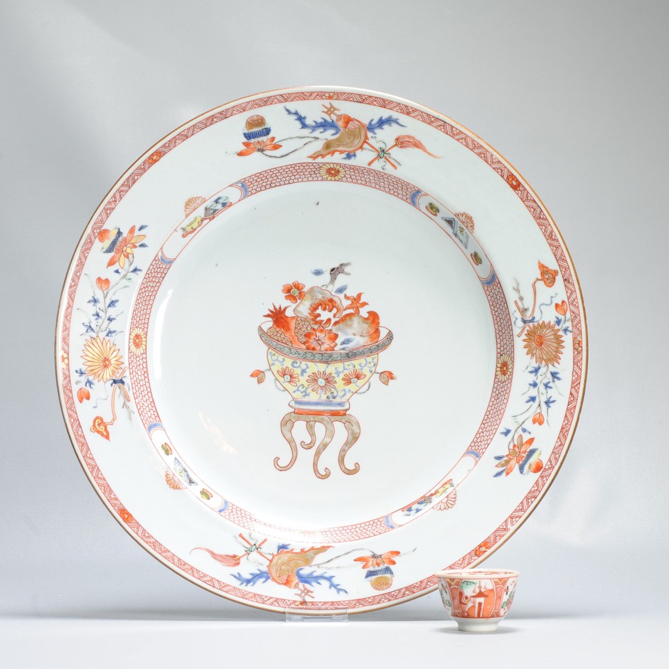 Große antike chinesische Porzellanschal e Kangxi/Yongzhe ng Periode Blume BAsket