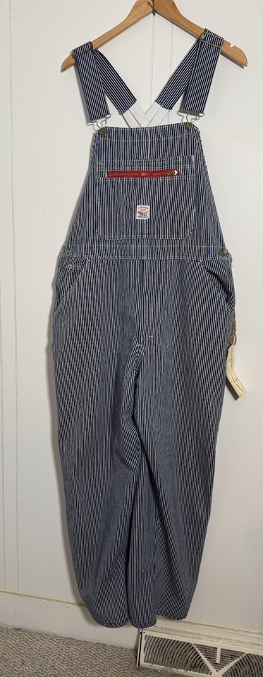 NWT Pointer Brand Bib Overalls Farmer Conductor Striped Blue White 40X29