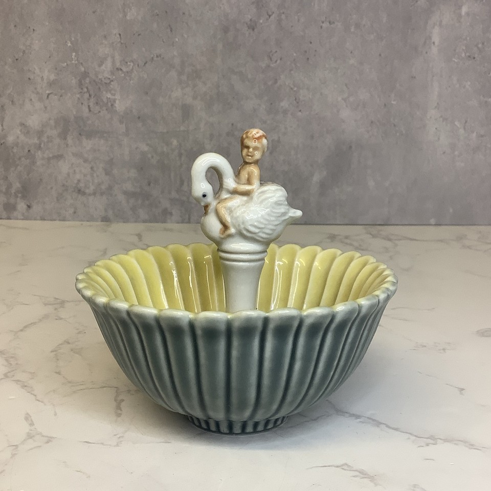 Rare Vintage Wade Porcelain Cherub On Swan Trinket Dish 1950s/1960s