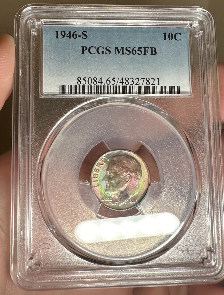 1946-S PCGS MS65 FB 10C Vibrant Neon Color