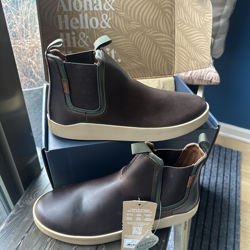 Olukai Mikole dunkles Holz Chelsea Stil Stiefel Herren Größe 10 (neu)