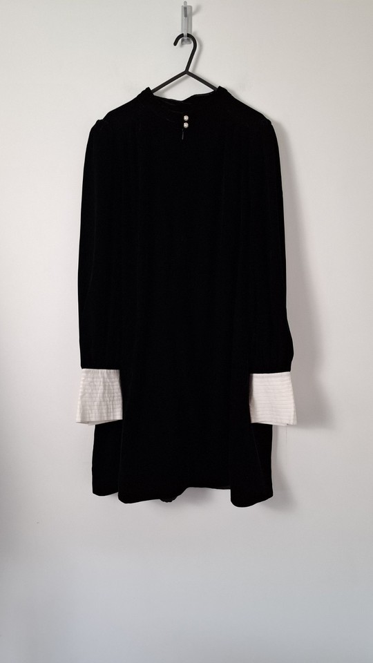 ME+EM Velvet Shift Dress with Statement Cuffs, Black - Size 16