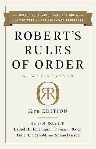 The only current authorized edition of the classic work on parliamentary procedure--now in a new updated edition Robert's Rules of Order is the recognized guide to smooth, orderly, and fairly conducted meetings. This 12th edition is the only current manual to have been maintained and updated since 1876 under the continuing program established by General Henry M. Robert himself. As indispensable now as the original edition was more than a century ago, Robert's Rules of Order Newly Revised is the acknowledged "gold standard" for meeting rules. New and enhanced features of this edition include: * Section-based paragraph numbering to facilitate cross-references and e-book compatibility * Expanded appendix of charts, tables, and lists * Sample rules for electronic meetings * Helpful summary explanations about postponing a motion, reconsidering a vote, making and enforcing points of order and appeals, and newly expanded procedures for filling blanks * New provisions regarding debate on nominations, reopening nominations, and completing an election after its scheduled time * Dozens more clarifications, additions, and refinements to improve the presentation of existing rules, incorporate new interpretations, and address common inquiries Coinciding with publication of the 12th edition, the authors of this manual have once again published an updated (3rd) edition of Robert's Rules of Order Newly Revised In Brief , a simple and concise introductory guide cross-referenced to it., The only current authorized edition of the classic work on parliamentary procedure--a guide to smooth, orderly, and fairly conducted meetings. Robert's Rules of Order is as indispensable now as the original edition was more than a century ago. This book is the acknowledged "gold standard" for meeting rules. New and enhanced features of this edition include: Section-based paragraph numbering to facilitate cross-references and e-book compatibility Expanded appendix of charts, tables, and lists Sample rules for electronic meetings Helpful summary explanations about postponing a motion, reconsidering a vote, making and enforcing points of order and appeals, and newly expanded procedures for filling blanks New provisions regarding debate on nominations, reopening nominations, and completing an election after its scheduled time Dozens more clarifications, additions, and refinements to improve the presentation of existing rules, incorporate new interpretations, and address common inquiries Coinciding with publication of the 12th edition, the authors of this manual have once again published an updated (3rd) edition of Robert's Rules of Order Newly Revised In Brief , a simple and concise introductory guide cross-referenced to it., The only current authorized edition of the classic work on parliamentary procedure--now in a new updated edition Robert's Rules of Order is the recognized guide to smooth, orderly, and fairly conducted meetings. This 12th edition is the only current manual to have been maintained and updated since 1876 under the continuing program established by General Henry M. Robert himself. As indispensable now as the original edition was more than a century ago, Robert's Rules of Order Newly Revised is the acknowledged "gold standard" for meeting rules.New and enhanced features of this edition include: * Section-based paragraph numbering to facilitate cross-references and e-book compatibility * Expanded appendix of charts, tables, and lists * Sample rules for electronic meetings * Helpful summary explanations about postponing a motion, reconsidering a vote, making and enforcing points of order and appeals, and newly expanded procedures for filling blanks * New provisions regarding debate on nominations, reopening nominations, and completing an election after its scheduled time * Dozens more clarifications, additions, and refinements to improve the presentation of existing rules, incorporate new interpretations, and address common inquiriesCoinciding with publication of the 12th edition, the authors of this manual have once again published an updated (3rd) edition of Robert's Rules of Order Newly Revised In Brief , a simple and concise introductory guide cross-referenced to it.