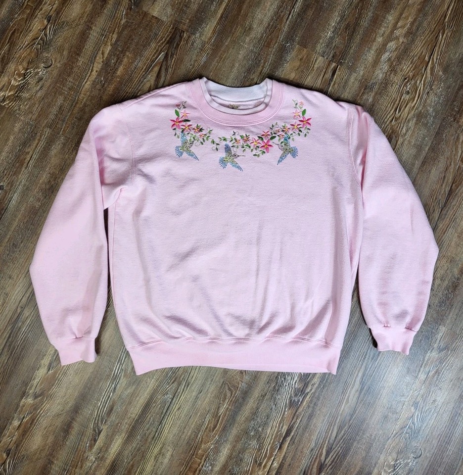 Rosa Sweatshirt Kolibri Damen Medium verziert Originals 90er Grannycore