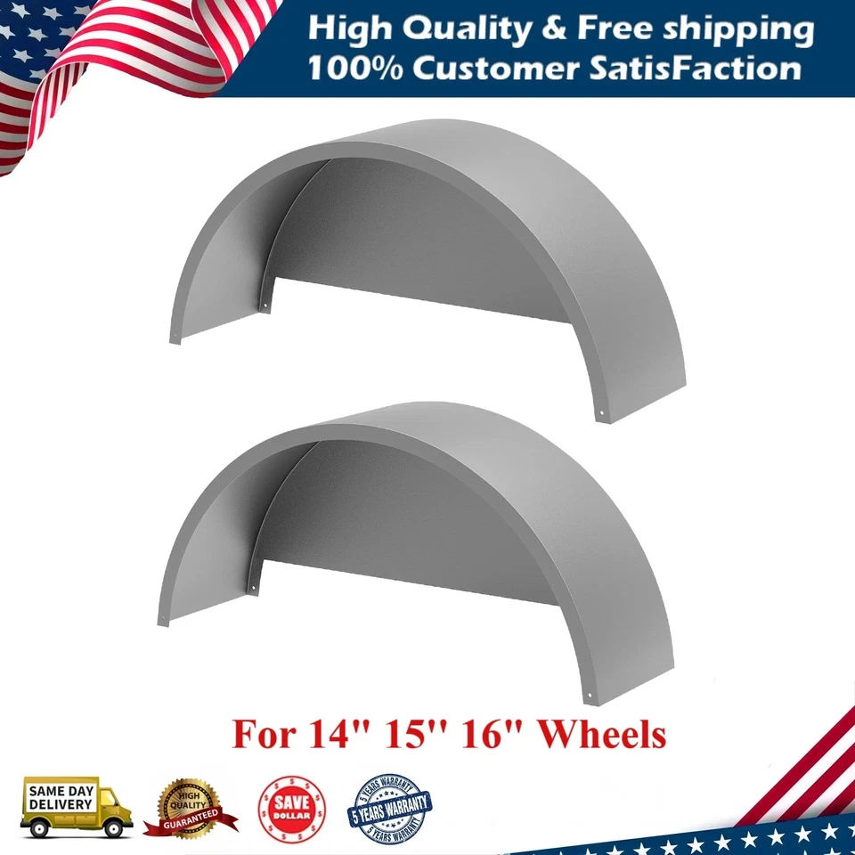 Pair of Steel Round Single Axle Trailer Fenders & Backs For 14" 15'' 16" Wheels