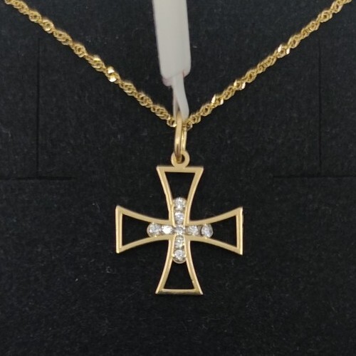 Pendant And Chain Gold 18k 750 Mls. Cross Squared With Zircons 15,7 MM