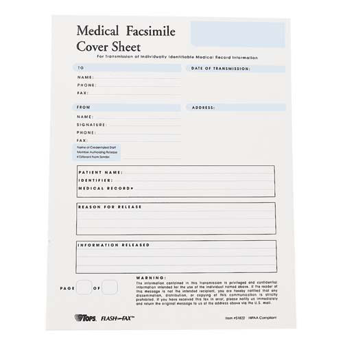 Flash Fax HIPAA Medical Fax Cover Sheets, 8 1/2 x 11, 100 Per Pad (TOP51822)
