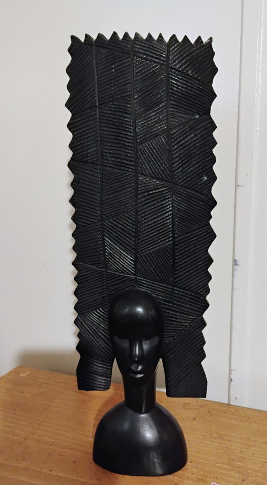 Vintage afrikanische Tanganjika handgeschnitzt Ebenholz Holz Frau Stamm Göttin Büste 16"