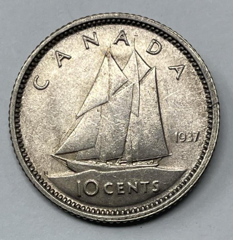 1937 Canada Silver 10 Cent. AU Condition. D-951