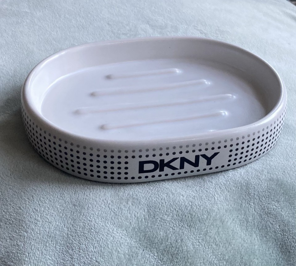 DKNY Soap Dish Oval White Ceramic Bathroom Adult Unisex modern Design. TD