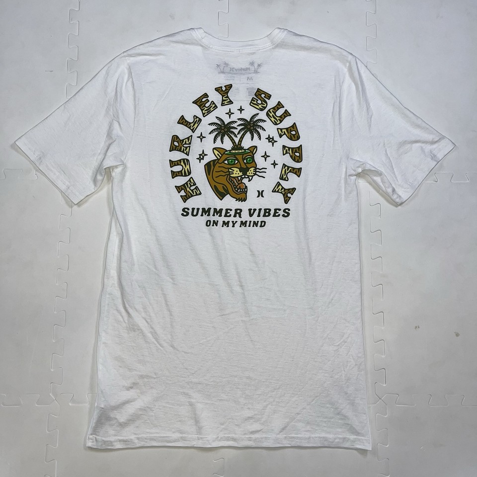 Hurley Everyday Washed Tiger Tee T Shirt Size Medium White Beach Animal Surf