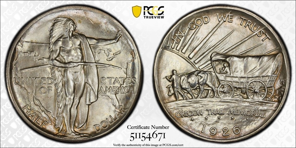 1926 Oregon Trail Commemorative Half Dollar - PCGS UNC Detail
