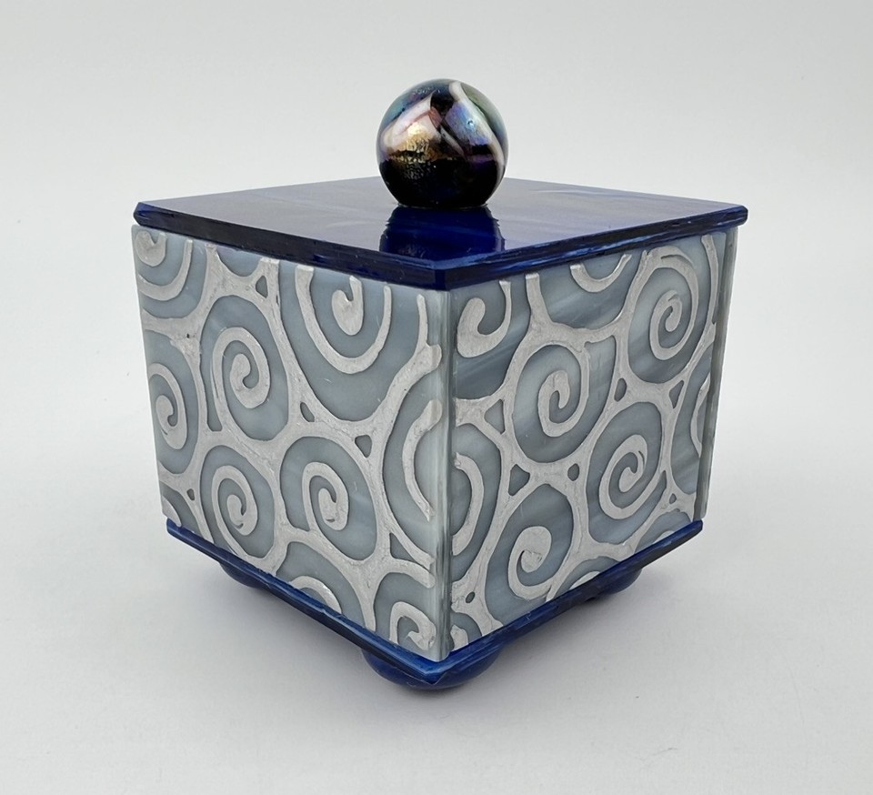 Mark Lewanski Kunst Glas Box Kerl Unikat Schmuck Spiegel Marmor 2005 blau Wirbel