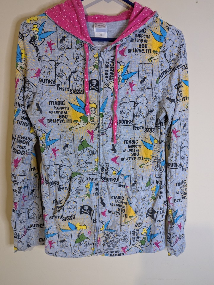 Disney Sassy Feisty Tinkerbell Peter Pan Damen XL Hoodie Reißverschluss vorne Jacke