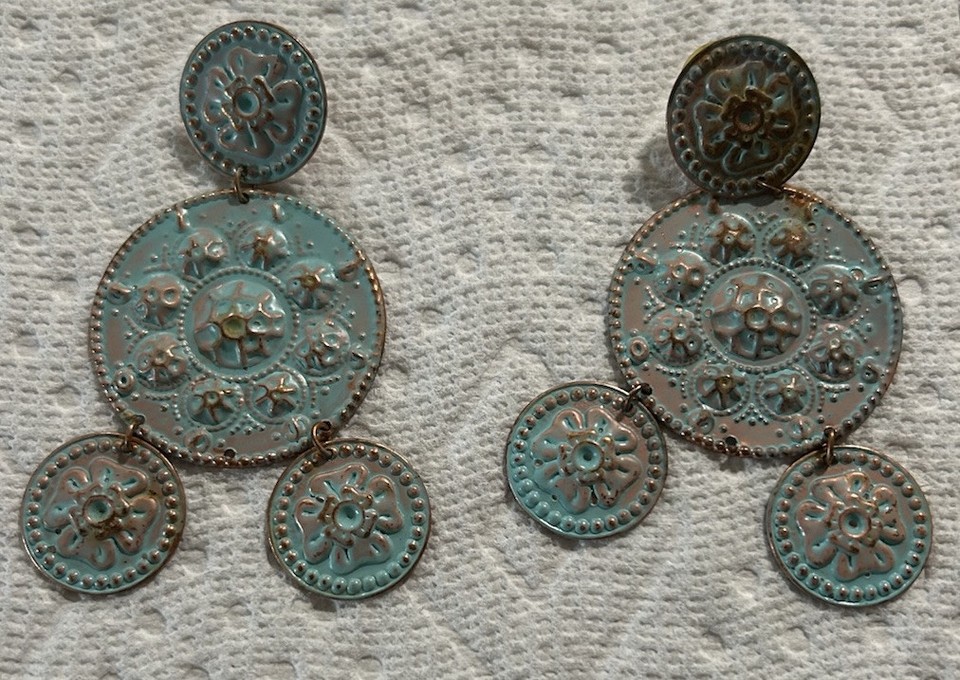 VINTAGE BOHO PIERCED COPPER DANGLING EARRINGS