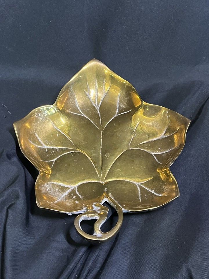 VINTAGE SCHWERE MASSIVE MESSING BLATTSCHALE 8,5 ZOLL