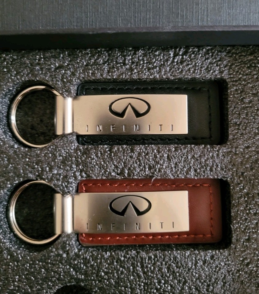 Infiniti Leather FOB Key Chain Set of 2 ~ Burgundy Brown & Black