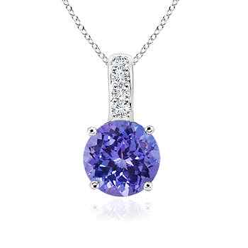 ANGARA 0,92 kt natürlicher Tansanit Anhänger Halskette mit Diamant in Sterlingsilber